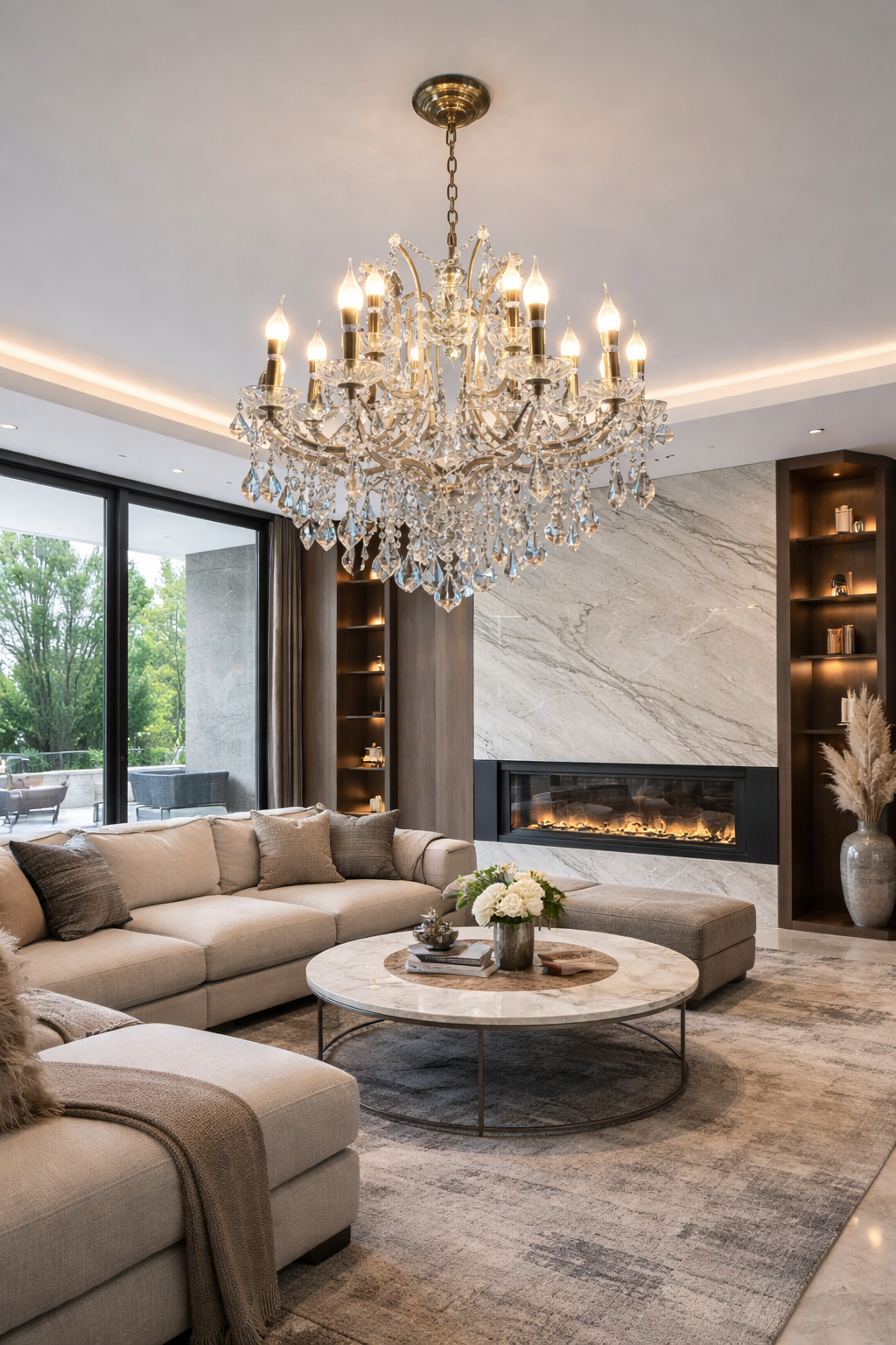 Available in three size options, this chandelier adapts effortlessly to different room scales, from intimate luxury bedrooms to grand foyer installations. Constructed from premium crystal, glass, and metal components, it offers both aesthetic excellence and long-term durability.