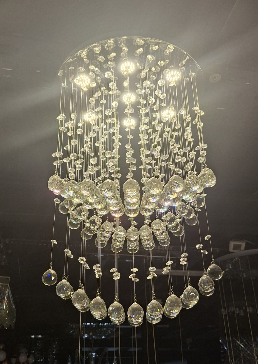 The Crystal LED Chandelier is an elegant lighting fixture designed to bring sparkle and modern sophistication to contemporary interiors. Featuring cascading crystal strands suspended beneath a compact ceiling-mounted frame, this chandelier creates a beautiful play of light and reflection that enhances the atmosphere of any room.