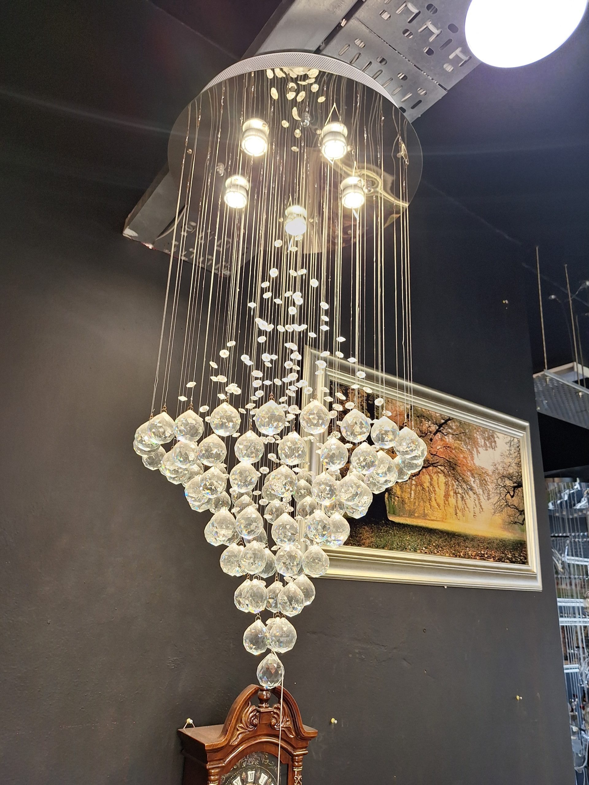 The Elegant Cascading Crystal Chandelier from LDC Decor is a luxurious lighting fixture designed to transform staircases, entrance foyers, living rooms, and high-ceiling spaces into statement interiors. Featuring a vertical cascading crystal design, this chandelier creates dazzling light reflections that elevate any room with a touch of classic luxury.